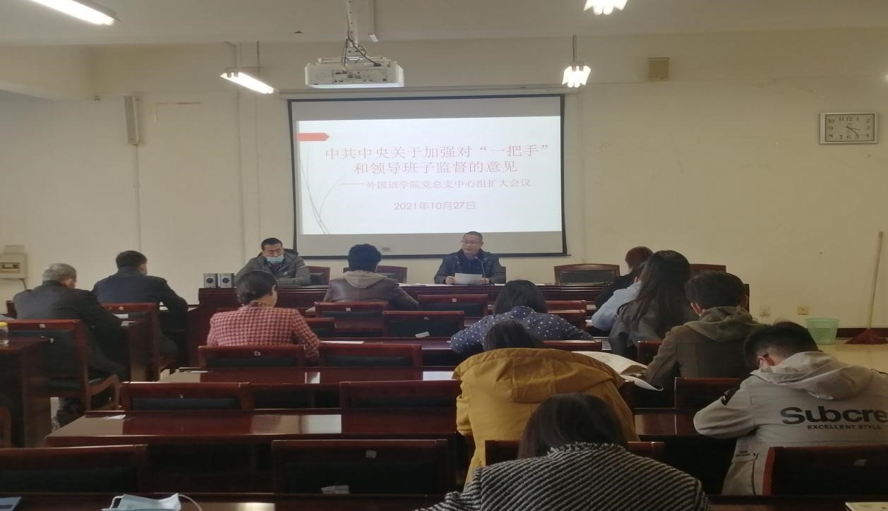 10月27日下午,bw西汉姆联党总支召开理论学习中心组扩大会议,集中学习《中共中央关于加强对“一把手”和领导班子监督的意见》,中心组全体成员以及全体党员教师参加学习。