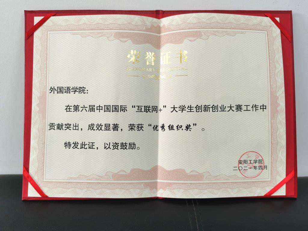 第六届中国国际“互联网+”老员工创新创业大赛获奖证书
