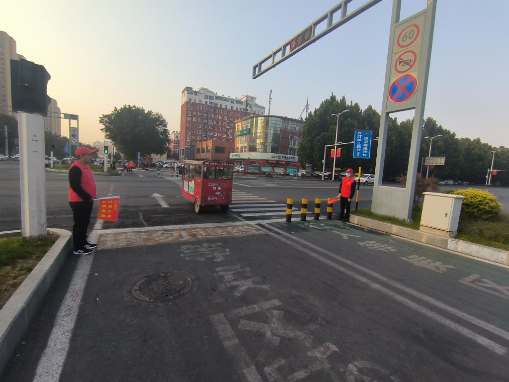 在活动现场,8位志愿者们身穿志愿者服装,佩戴志愿者标识,积极参与到交通岗的日常工作中。他们或协助交警维护交通秩序,或引导行人、电动车遵守交通规则,或劝阻行人和电动车闯红灯等不文明行为。