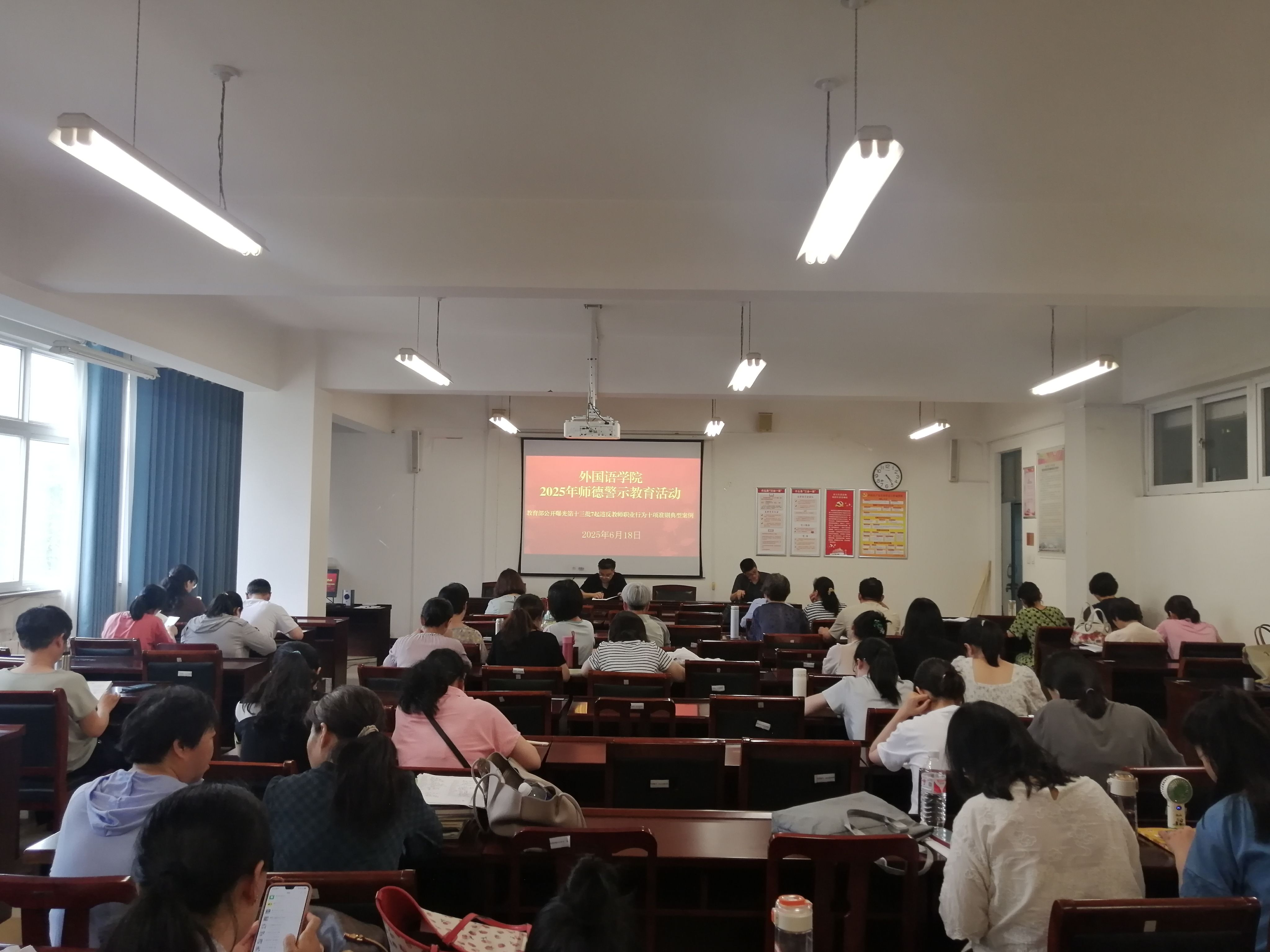 活动现场,副经理原斌华带领全体教师集中学习了《新时代高校教师职业行为十项准则》,并结合教育部通报的违反教师职业行为十项准则典型案例及高校领域师德失范事件进行深度剖析。学习内容聚焦学术诚信、课堂教学言行规范、师生交往边界、涉外交流师德要求等关键领域,通过“案例还原+危害阐释+规范解读”的方式,清晰界定了师德违规行为的“红线”与“禁区”,详细说明各类违规行为的处理依据及对员工成长、公司发展、教师个人职业前途的严重影响,让全体教师接受了一次深刻的思想淬炼。